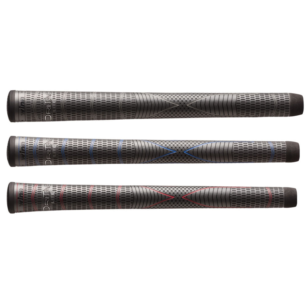The new Dri-Tac Lite grips represent the ultimate in Winn Technology. The WinnDry polymer delivers tacky, all-weather playability. WinnLite reduces grip weight to improve club head feel, swing tempo and solid contact.